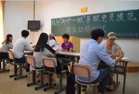 此次迎新工作中,学生党员志愿者“亮党员身份,展党员形象”,不仅为新生进行英语口语测试,在家长休息区、志愿者服务区,都会看到佩戴党徽的学生党员在忙碌着。在迎新过程中,外院学生党员用自身良好的形象、周到的服务给新生展示了新一代大学生党员的风采。外院学生党员纷纷表示,一定要努力提高自身的修养,用更加严格的标准要求自己,在生活和学习中发挥党员的模范带头作用,把专业学习与志愿服务结合起来,更好地贯彻落实“两学一做”精神。