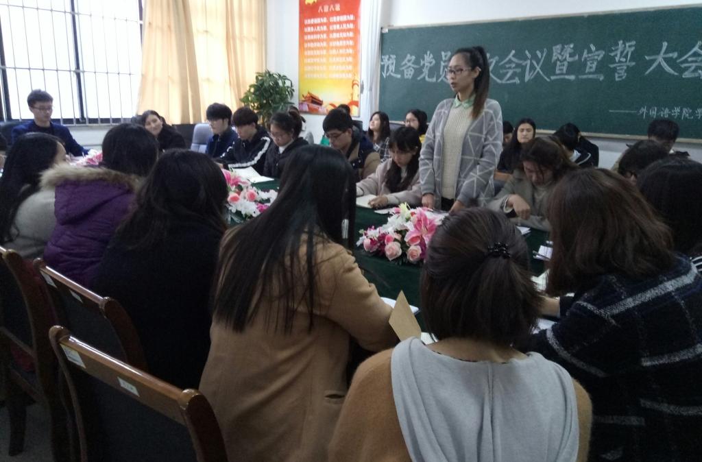 12月2日,太阳集团tyc539macau在逸夫楼2106成功举行关于预备党员接收会议暨宣誓仪式。团总支书记郭晶老师、学生党支部书记潘月明老师、学生党员以及本期拟发展对象参加了本次大会。