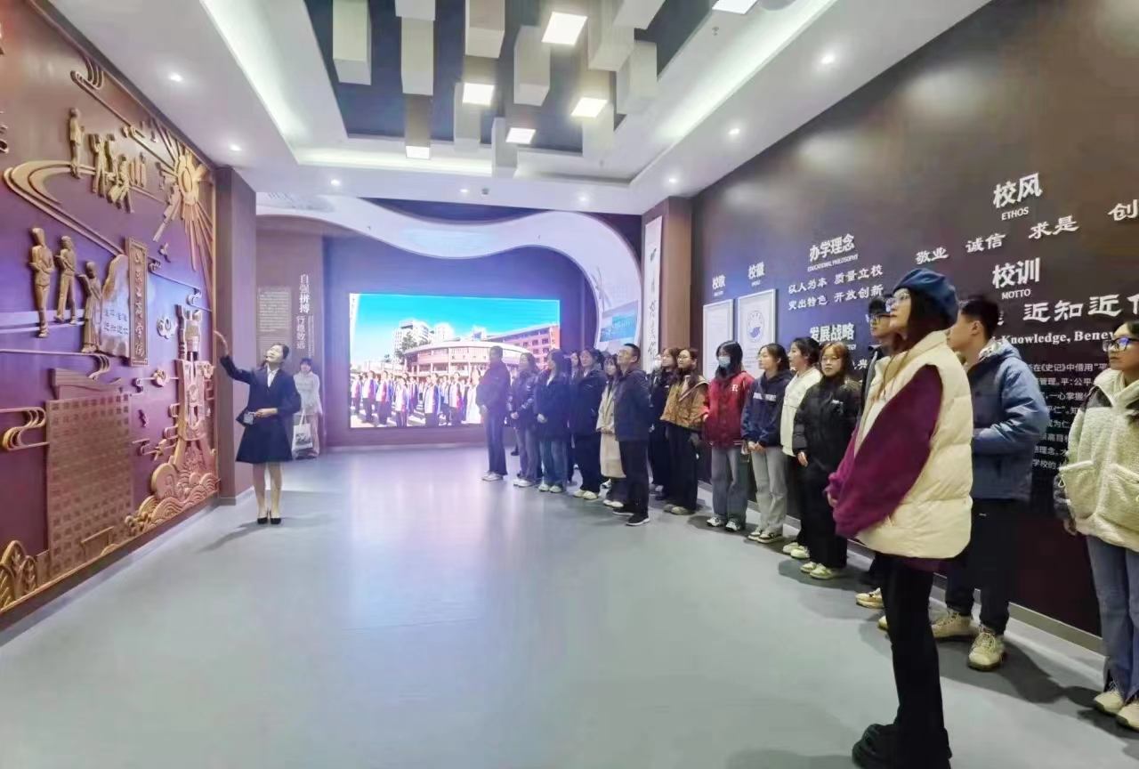 在讲解员带领下,同学们有序进入校史馆开启此次参观学习之旅。分展厅内图文并茂的展览牌是对学校一个又一个流光溢彩的办学成就和办学成果的集中展示,更是对“山商精神”的实践诠释;多媒体音频设备以时间为标尺,以事件为刻度,凸显历史节点、精神触点、时代焦点。校史馆全面呈现了学校兴学图强、明诚弘毅、追求卓越的发展历程,深层凝练了山商人自强不息、上下求索、励精图治、求是崇真的进取精神和弘毅志向。