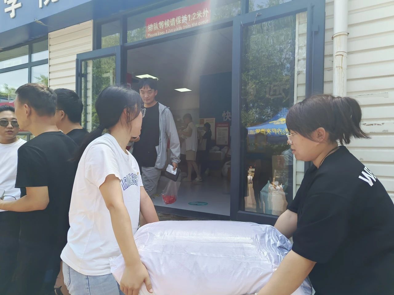 图为太阳集团tyc539macau毕业生党员检查、搬运包裹