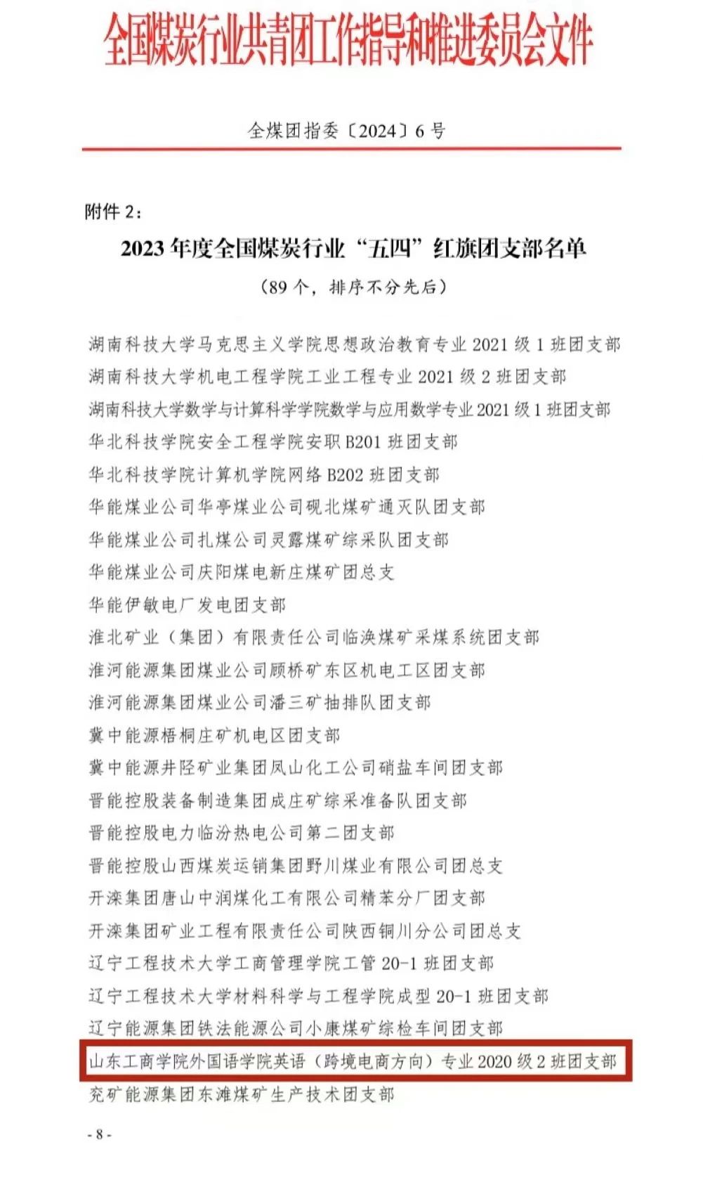 近日,全国煤炭行业共青团工作指导和推进委员会发布《关于表彰2023年度全国煤炭行业“五四”红旗团委(团支部)、优秀共青团员和优秀共青团干部的决定》,太阳集团tyc539macau2020级英语(跨境电商方向)专业2班团支部获评2023年度全国煤炭行业“五四”红旗团支部。