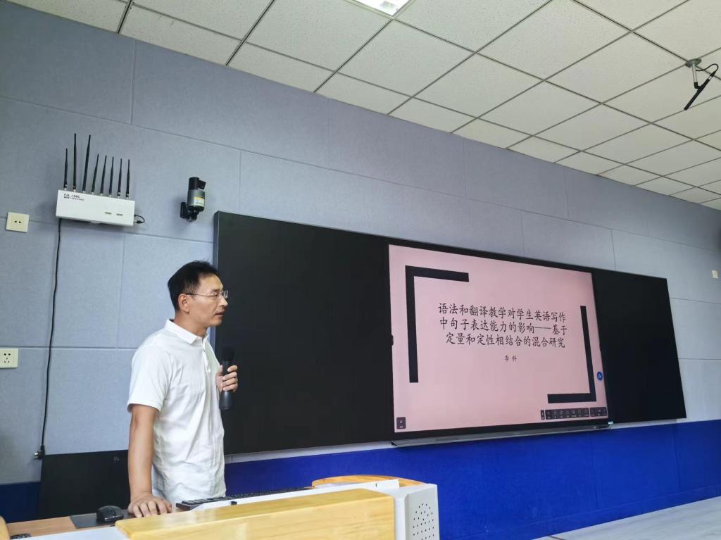 李科博士则聚焦大学英语教学实际,采用定性与定量相结合的混合研究方法,对比分析了语法翻译教学与以功能对等为导向的翻译教学对学生英语写作表达水平的影响。在研究案例分析环节,李科博士不仅分享了如何在英语教学研究中开展定量与定性研究,还基于研究成果,为大学英语写作教学改革提出了独到见解和宝贵建议,实现了科研与教学的深度融合。