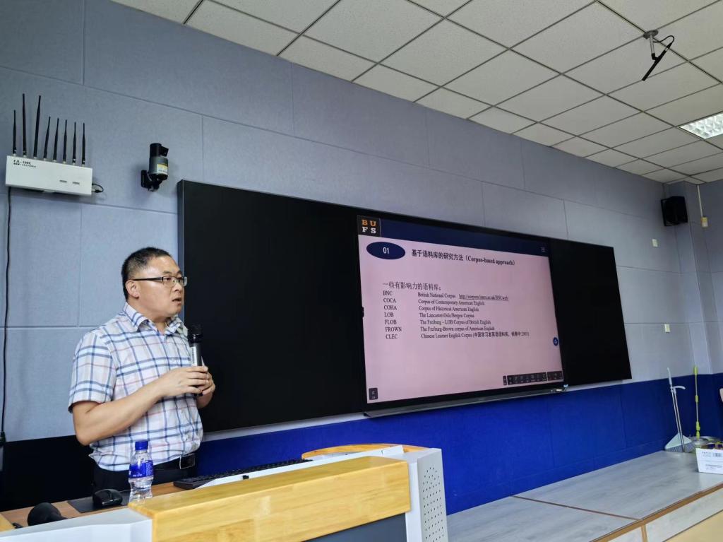 王国锋博士以“语料库在外语教学与科研中的应用”为主题,深入浅出地阐述了语料库的定义、特点及其分类。他结合具体案例,详细介绍了自建语料库的原则、步骤和取样框架,并以自己的毕业论文为例,生动展示了如何将自建翻译类比语料库应用于论文写作。