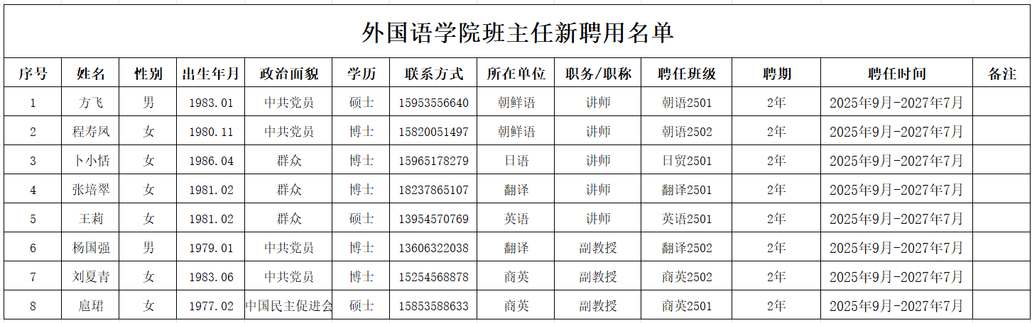 依据《太阳成集团tyc539班主任管理办法》,太阳集团tyc539macau开展2025年班主任选聘工作,拟聘用8名教师担任班主任,现将名单公示如下。