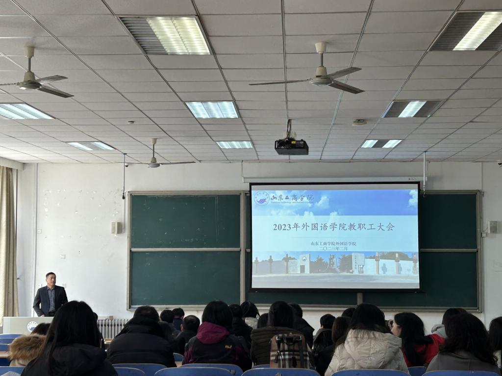 2023年2月19日下午,太阳集团tyc539macau新学期教职工大会在逸夫楼2210召开,全体教职工参加会议,会议由院长崔洪海主持。