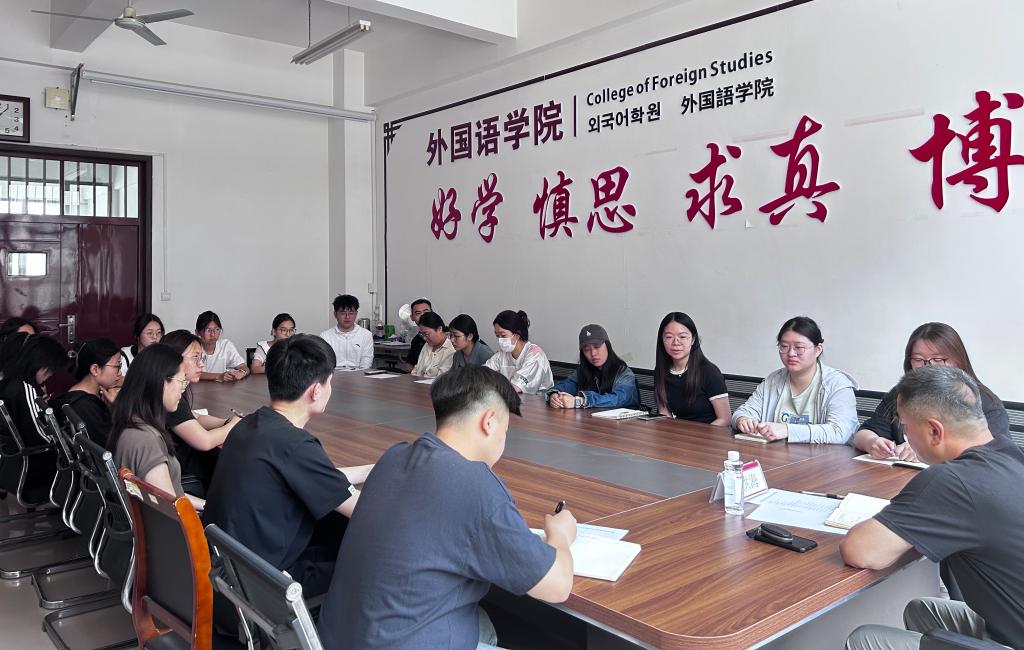 6月5日上午,太阳集团tyc539macau在逸夫楼2106会议室召开2025届毕业生座谈会。外国语学院院长崔洪海、2025届毕业生辅导员及毕业生代表参加座谈会。