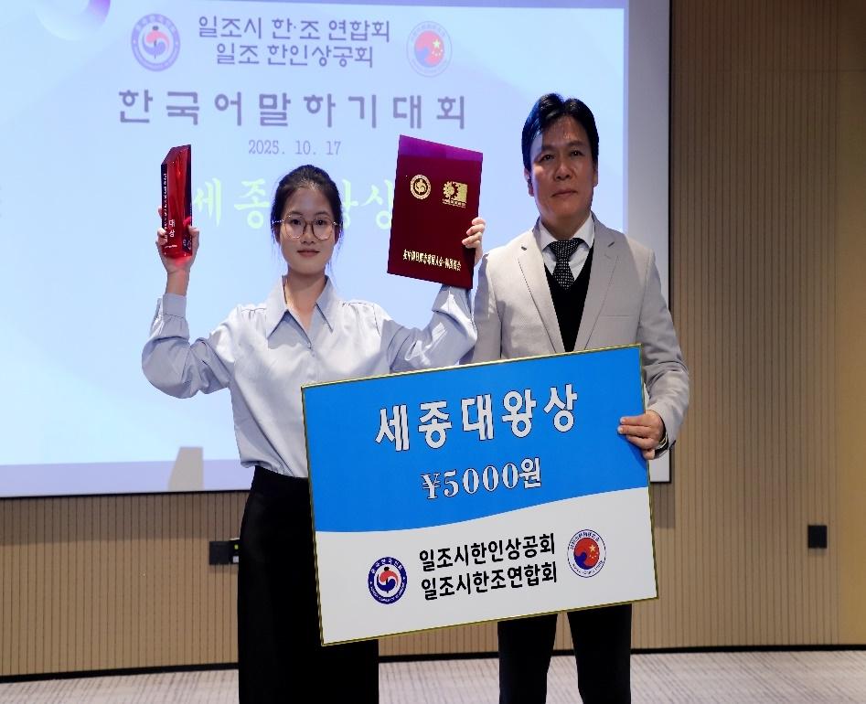 2025年10月17日,由日照市韩人商工会与日照市韩·朝联合会主办的第16届579周年韩文日纪念韩语演讲大赛在山东外国语职业技术大学圆满落幕。我校太阳集团tyc539macau学子在本次比赛中表现优异,载誉而归。其中,陈宛萤同学荣获大赛最高奖项——“世宗大王奖”;宇丽颖、王佳琦两位同学同获鼓励奖。