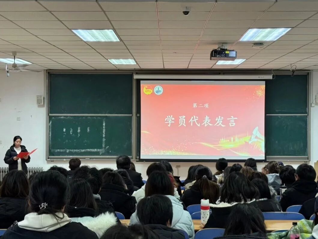 开班仪式上,学院党委副书记朱祥龙为培训班授旗。学员代表王媛发言。