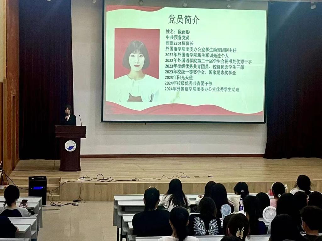 段雨彤向新生介绍了一名合格党员应具备的素质,强调作为一名党员不仅要严格要求自己、学好理论知识,也要勇于实践、将所学知识转化为服务社会的实际行动。