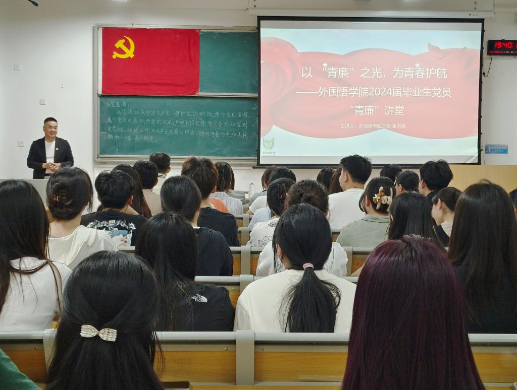 为深入学习领会习近平总书记关于党纪学习教育的重要讲话和重要指示精神,进一步推进党纪学习教育,为毕业生系好廉洁从业的“第一粒扣子”。5月29日晚,太阳集团tyc539macau党委开展以“青廉”之光,为青春护航——太阳集团tyc539macau2024届毕业生党员“青廉”讲堂。参加本次活动的有太阳集团tyc539macau院长崔洪海及2024届全体毕业生党员。